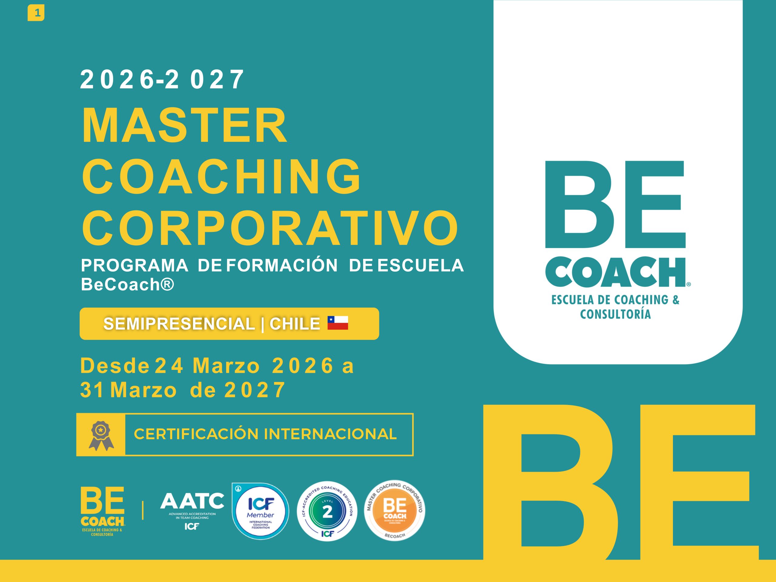 El Master Coaching Corporativo es una Formación única en mundo del Coaching que se desarrolla en un transcurso de 12 meses continuos. Una vez finalizado el programa y habiendo cumplido con todos los requisitos formales, quedarás certificado como Master Coach Corporativo, debidamente capacitado para trabajar en Organizaciones. El formato de este Programa permite que puedas cursar la Formación en Coaching Organizacional, Acreditado por ICF ACEP Level 2, con 1 o hasta 5 especialidades incluidas. De esta forma, si sólo quieres formarte como Coach Organizacional para en un futuro cursar otras especialidades, ¡puedes hacerlo! Del mismo modo, si ya eres Coach y buscas una especialización puedes cursar TEAM Coaching, EXECUTIVE Coaching, AGILE Coaching, Coaching con PNL y Plasticidad Emocional, o, todas estas especialidades por separado. Nuestro Master Coaching Corporativo es un programa pensado en integrar y flexibilizar la formación continua de quienes eligen BeCoach® como su Escuela de formación.